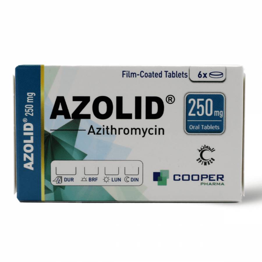 أزوليد (AZOLID) هو دواء مضاد حيوي، يحتمل أنه يحتوي على أزيثروميسين. يستخدم لعلاج مجموعة متنوعة من العدوى البكتيرية. هذا المنتج متوفر على شكل أقراص بتركيز 250 ملجم، وتحتوي العبوة على 6 أقراص.