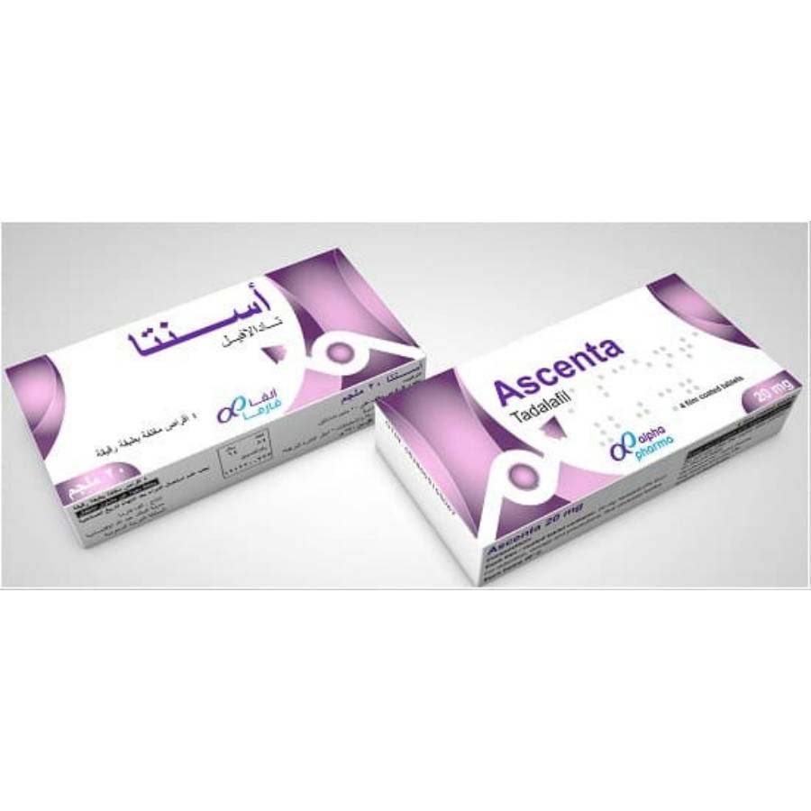 أقراص Ascenta بتركيز 20 ملغ هي دواء يُؤخذ عن طريق الفم يحتوي على 20 ملليغرام من مادة فعالة، يحتمل أن تكون ستاتين أو دواء قلب وأوعية دموية. تحتوي العبوة على 4 أقراص. قد يكون هذا الحجم الصغير من العبوة مخصصاً كجرعة ابتدائية، عبوة تجريبية، أو لنظام علاجي محدد قصير الأمد، يُستخدم للتحكم في حالات مثل ارتفاع الكوليسترول أو خطر أمراض القلب والأوعية الدموية تحت إشراف طبي.