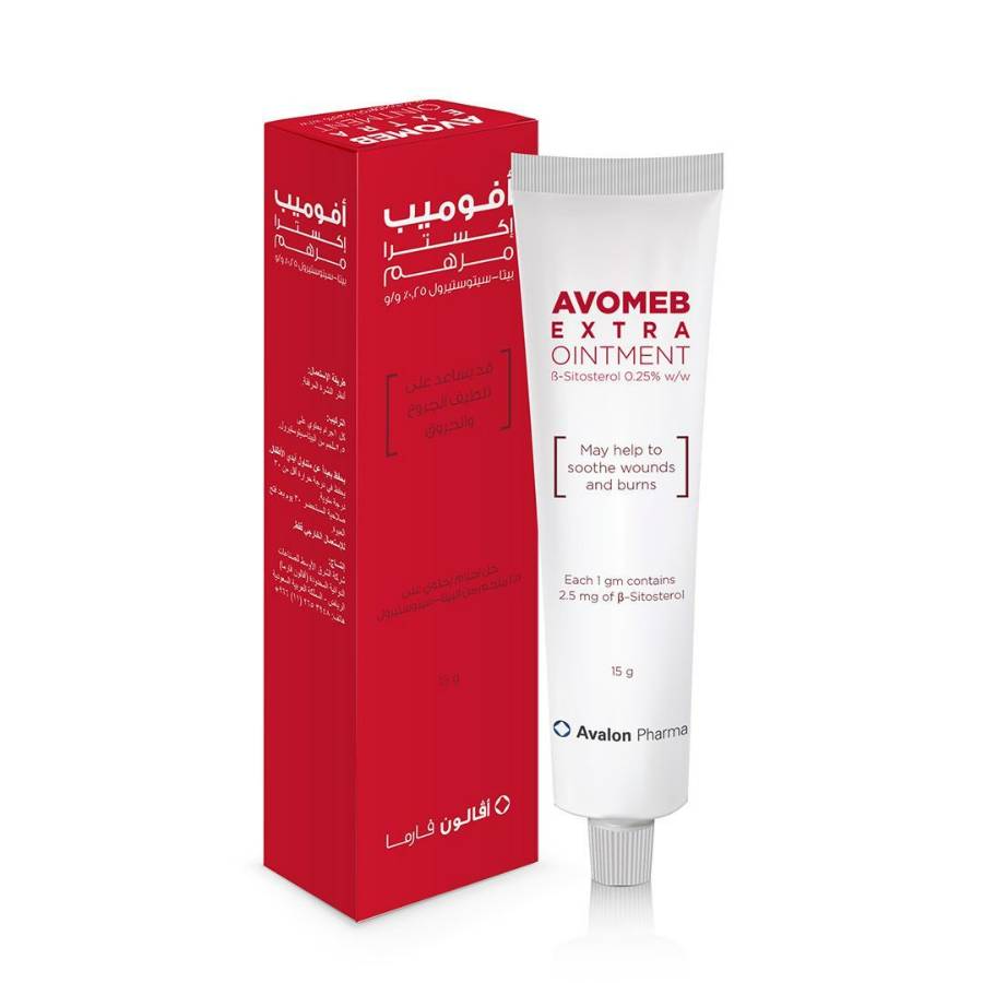 مرهم أفوميب إكسترا (AVOMEB EXTRA OINTMENT) هو مرهم موضعي بتركيبة "إضافية"، يحتمل أنه لعلاج الجلد أو التئام الجروح. يطبق خارجياً. يأتي هذا المنتج في أنبوب بحجم 15 جرام.