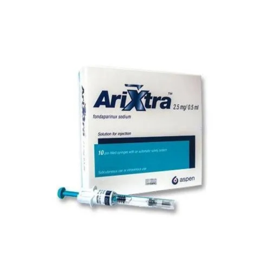 Arixtra بتركيز 2.5 ملغ/0.5 مل هو دواء مضاد للتخثر قابل للحقن يحتوي على مادة فوندابارينوكس الصوديوم. يتم تقديمه في محاقن مُعبأة مسبقاً، حيث تحتوي كل محقنة على 2.5 ملليغرام في 0.5 مل من المحلول. تحتوي العبوة على 10 محاقن. يُستخدم هذا الدواء لمنع الجلطات الدموية الوريدية بعد أنواع معينة من الجراحة، مثل إجراءات جراحة العظام.