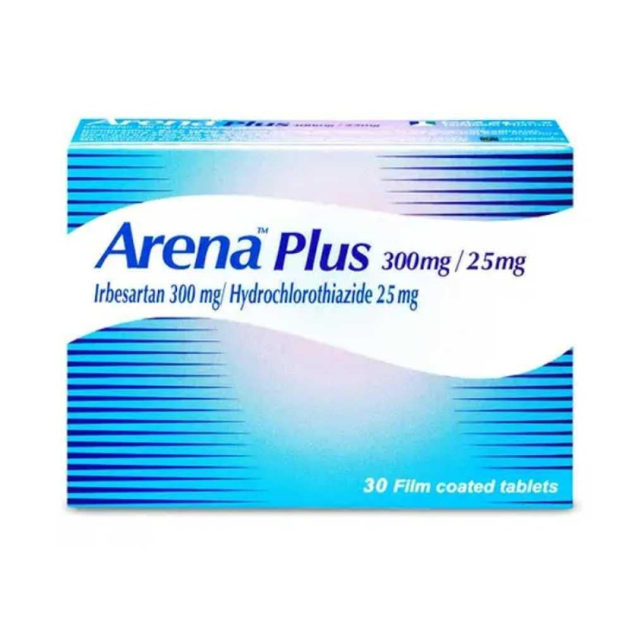 أقراص Arena Plus بتركيز 300/25 ملغ هي دواء مركب يُؤخذ عن طريق الفم لعلاج ارتفاع ضغط الدم. يحتوي كل قرص على 300 ملليغرام من ARB (غالباً لوسارتان) وجرعة أعلى من 25 ملليغرام من هيدروكلوروثيازيد (HCT). تحتوي العبوة على 30 قرصاً. توفر هذه التركيبة أقصى تأثير مدر للبول مدموجاً مع جرعة عالية من ARB للمرضى الذين يعانون من ارتفاع ضغط الدم المقاوم أو احتباس السوائل الكبير.