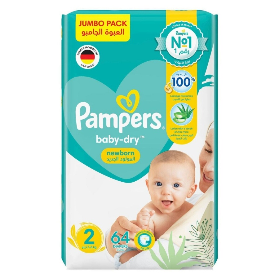 الوصف: بامبرز مقاس 2 صغير، مناسبة للأطفال بوزن 3-6 كجم. العبوة تحتوي على 3 أكياس، كل كيس يحتوي على 64 حفاضة. المزايا: اقتصادية ومناسبة للاستخدام اليومي. توفر حماية من التسربات. ناعمة على بشرة الطفل. طريقة الاستخدام: ضعي الحفاضة بحيث تكون الأشرطة اللاصقة في الأمام، ثم ثبتيها بشكل مريح.