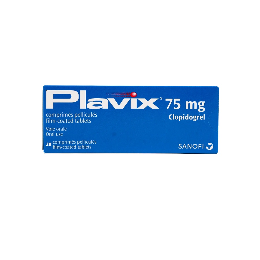 أقراص بلافِكس بتركيز 75 ملجم. دواء يستخدم للمساعدة في منع تجلط الدم. العبوة تحتوي على 28 قرصاً.