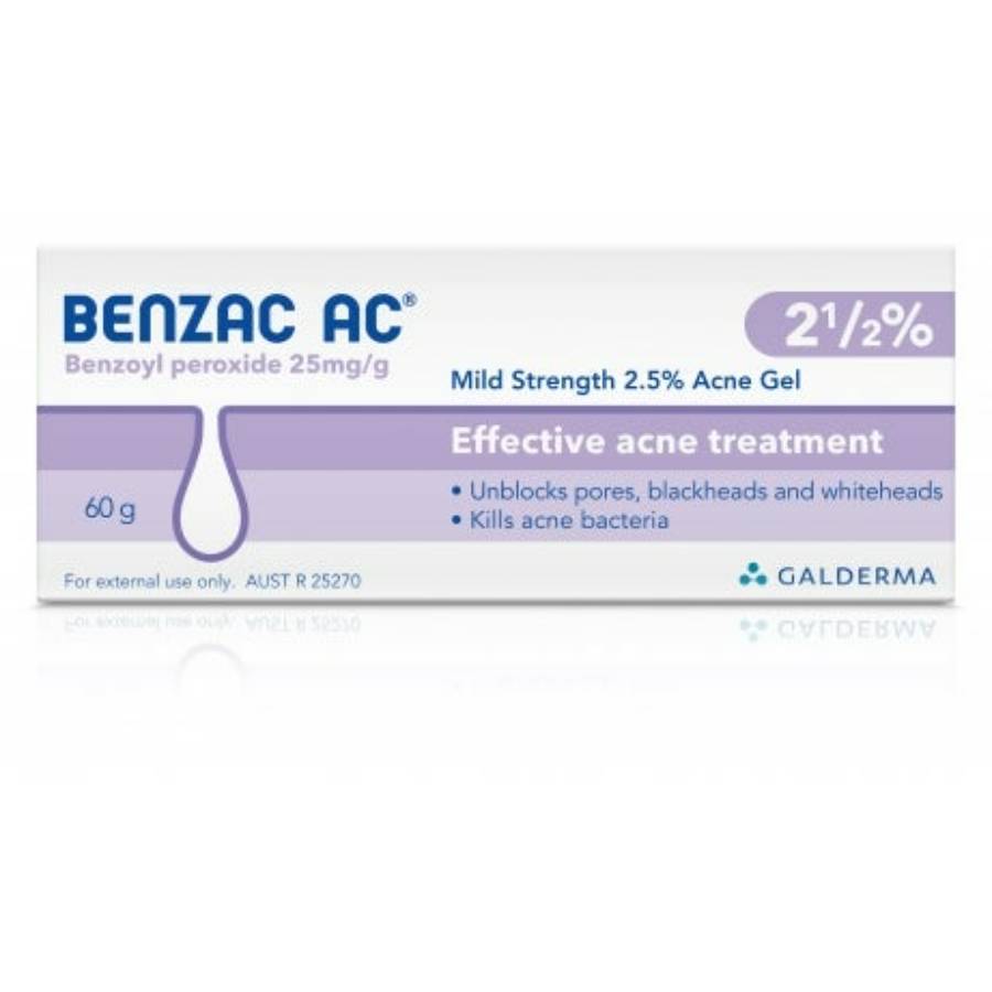 جل بنزاك إيه سي 2.5% (BENZAC AC 2.5% GEL) هو جل موضعي بتركيز أقل يحتوي على بنزويل بيروكسايد. يستخدم لعلاج حب الشباب الخفيف إلى المتوسط. يأتي هذا المنتج في أنبوب بحجم 60 جرام بتركيز 2.5%.
