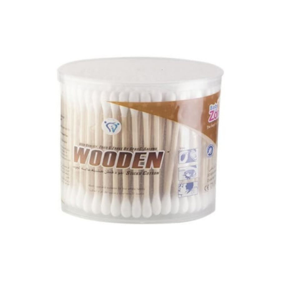 أعواد قطنية خشبية من بيبي زون، عبوة 200 قطعة. تتميز بأعواد خشبية صديقة للبيئة بدلاً من البلاستيك. تستخدم لتطبيقات النظافة والتجميل المختلفة.