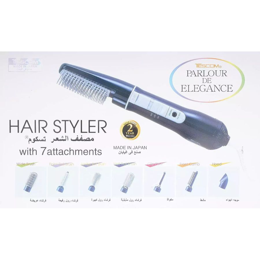 الوصف: مصفف شعر تسكوم مع 7 ملحقات، مصمم لتصفيف الشعر بسهولة. كيفية الاستخدام: استخدمي الملحقات المناسبة لتصفيف الشعر. الأهمية: - يوفر خيارات تصفيف متعددة. - سهل الاستخدام. - مناسب لجميع أنواع الشعر.