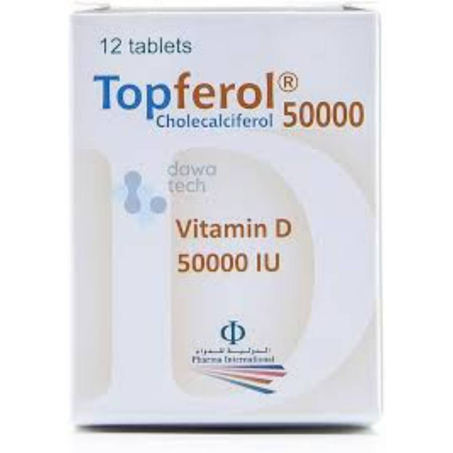 دواء توبفيرول بتركيز 50000 وحدة دولية، على شكل أقراص مغلفة (F.C.).\nالعبوة تحتوي على 20 قرصًا وهي منتج WS (مخزن).\nغالباً ما يحتوي على فيتامين E بجرعة عالية، ويستخدم كمكمل غذائي أو لعلاج حالات نقص معينة.