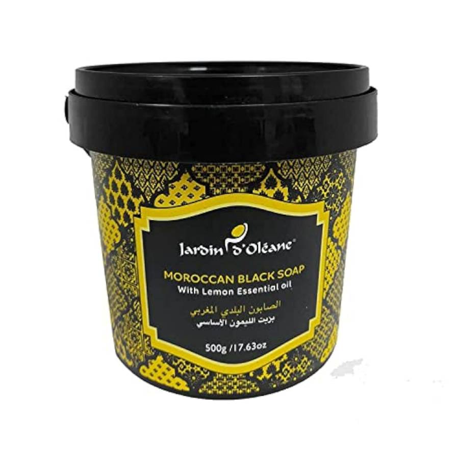 صابون مغربي أسود من جاردن دي أوليان بزيت الليمون في عبوة كبيرة بوزن 500 جرام.