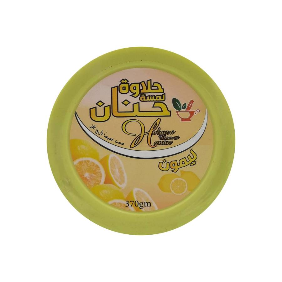 حلاوة حنان بالليمون هي نوع من الحلوى أو الطحينة الحلوة. تأتي بوزن 370 جرام بنكهة الليمون.