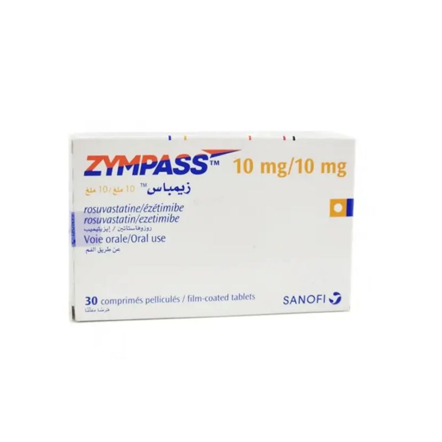 دواء زيمباس بتركيز 10/10 ملغ، على شكل أقراص مغلفة (F.C.).\nالعبوة تحتوي على 30 قرصًا.\nيستخدم لخفض مستويات الكوليسترول والدهون الأخرى في الدم.\nيجمع بين مكونين فعالين لتحقيق تأثير أكبر في خفض الدهون.