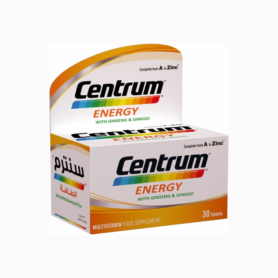 الوصف: سنترم إنرجي مع الجنسنغ والجنكو هو مكمل متعدد الفيتامينات مصمم لتعزيز الطاقة، تحسين الوضوح الذهني، ودعم الحيوية العامة. المزايا الرئيسية: يزيد الطاقة ويقلل التعب. يعزز التركيز الذهني والأداء المعرفي. يدعم الصحة العامة والرفاهية. طريقة الاستخدام: تناول قرص واحد يوميًا مع الماء أو حسب توجيهات الطبيب. المحتوى الغذائي: فيتامينات (مثل مجموعة فيتامينات ب)، معادن، جنسنغ، وجنكو بيلوبا.