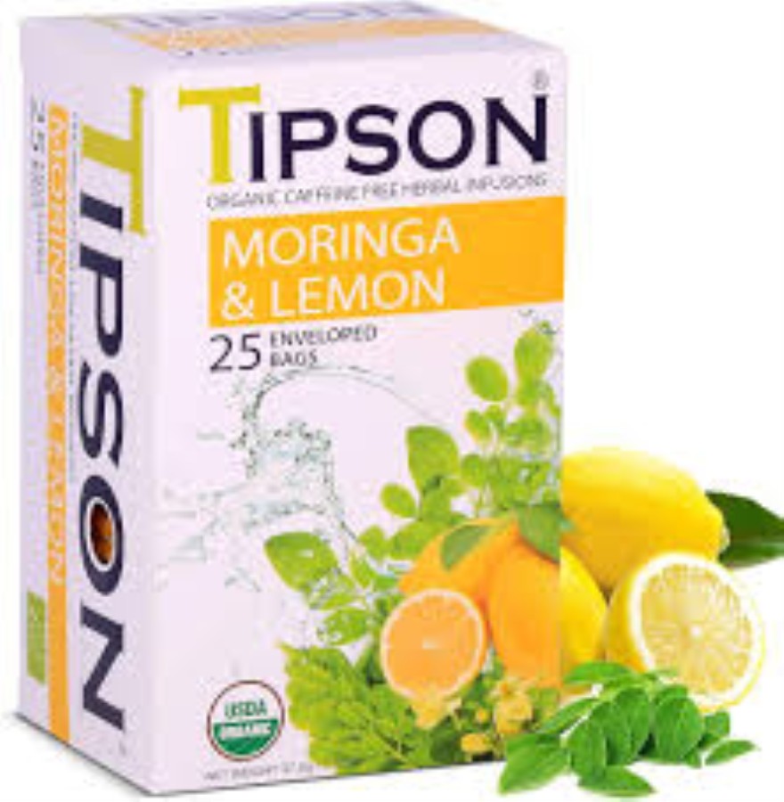 شاي أعشاب تيبسون العضوي المورينجا بالليمون 25 مغلف