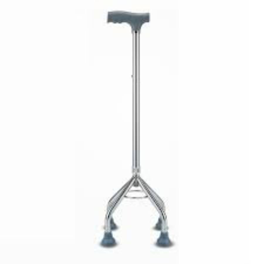 عصا (عكاز) بأربعة أرجل. مصممة لتوفير دعم واستقرار إضافي للأشخاص الذين يواجهون صعوبة في المشي أو التوازن. الأرجل الأربعة تزيد من مساحة القاعدة وتوفر ثباتًا أكبر من العصا العادية.