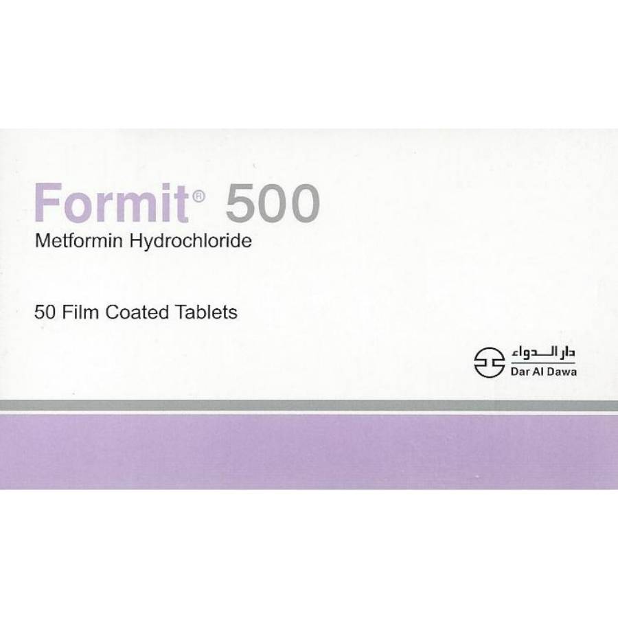 أقراص Formit بتركيز 500 ملغ، تأتي في عبوة تحتوي على 50 قرص. هذا الدواء يحتوي على الميتفورمين ويستخدم لعلاج السكري من النوع الثاني. يساعد على خفض مستويات السكر في الدم وتحسين استجابة الجسم للأنسولين.
