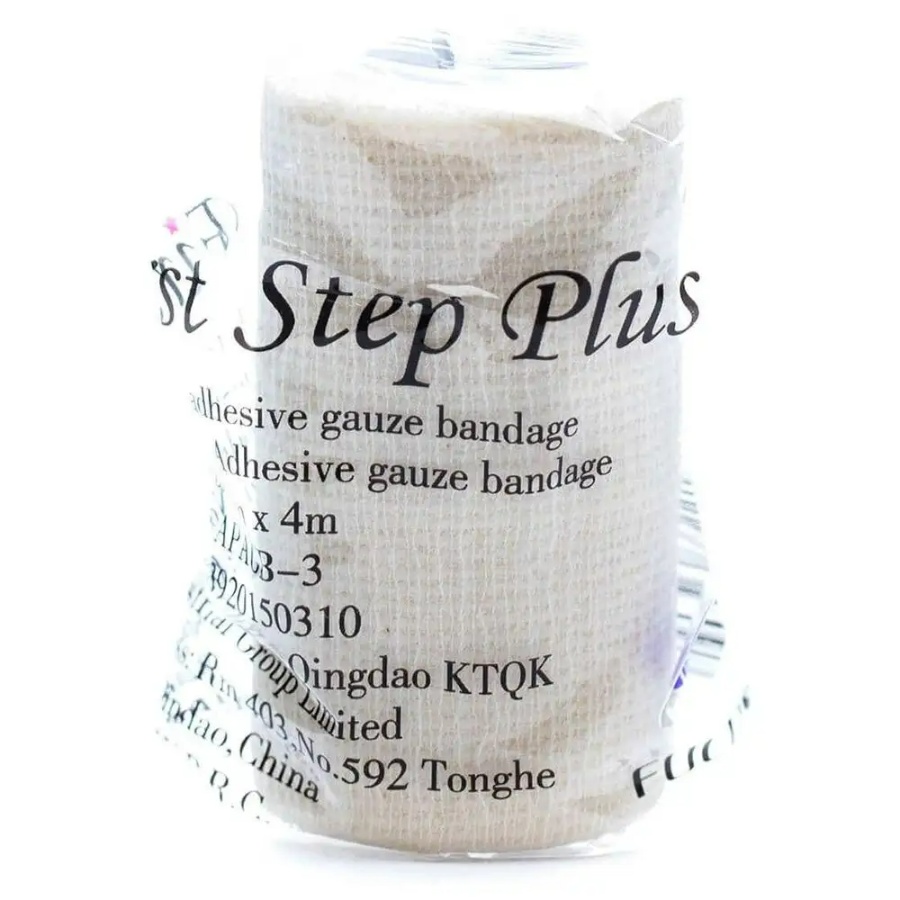 رباط ضاغط من فوكس فيرست ستيب بعرض 8 سم وطول 4 متر، مصمم لتثبيت الضمادات أو توفير دعم إضافي للمفاصل والعضلات أثناء الإصابات أو الرياضة.