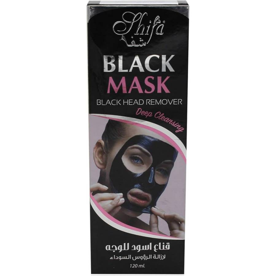 ماسك الوجه الأسود من "شفا" بحجم 120 مل. هذا الماسك يعتمد على مكونات تساعد على تنقية البشرة وإزالة الرؤوس السوداء والشوائب من المسام. غالبًا ما يحتوي على الفحم النشط أو الطين لامتصاص السموم والزيوت الزائدة. يترك البشرة نظيفة، منعشة، ومظهر المسام أقل وضوحًا.