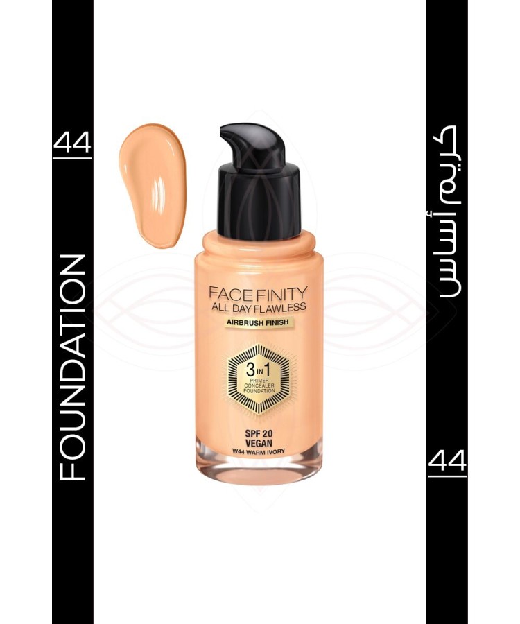 كريم أساس من ماكس فاكتور بلون 44. يوفر تغطية متوسطة إلى عالية مع تركيبة خفيفة تدوم طويلاً. مثالي لإطلالة مشرقة وطبيعية.