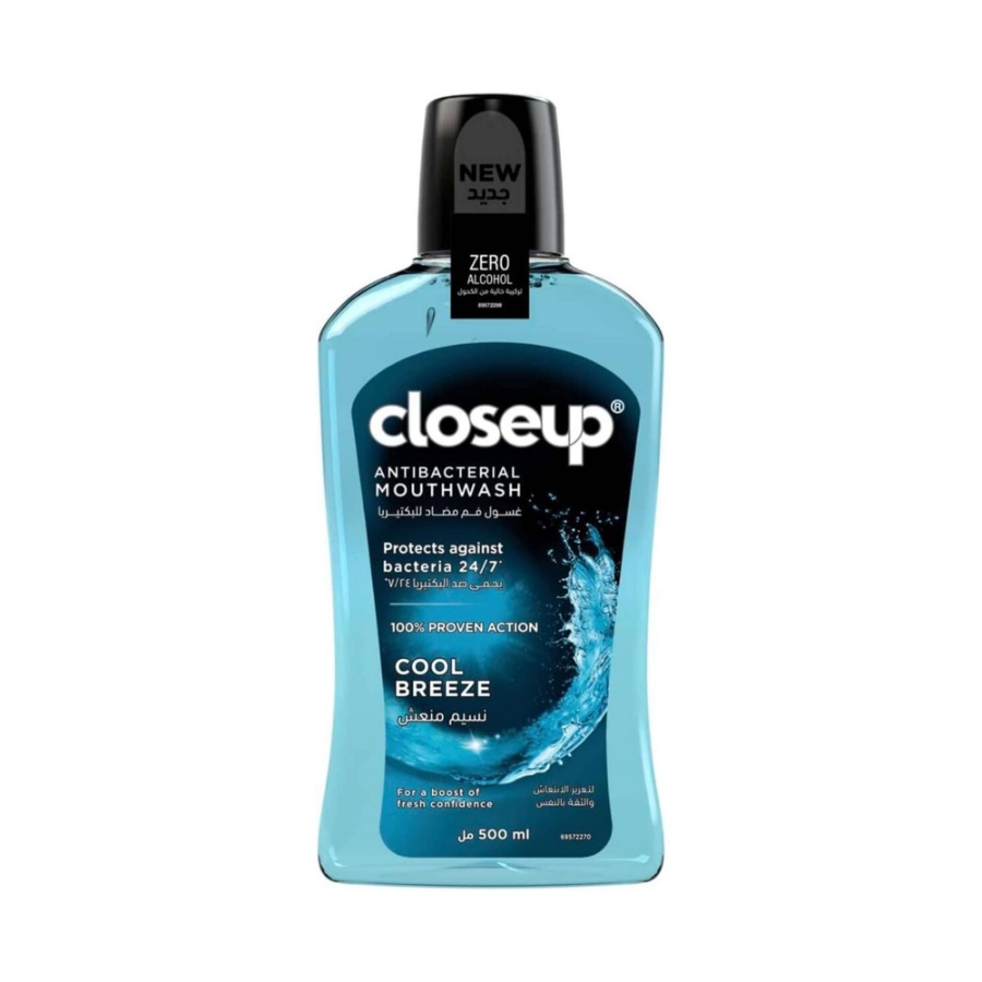 غسول الفم CLOSE UP COOL BREEZE يمنحك نفسًا منعشًا قويًا يدوم طويلاً. يساعد على إزالة البكتيريا ويوفر شعورًا بالانتعاش النظيف في فمك. حجم مناسب للاستخدام اليومي كجزء من روتين العناية بالفم.