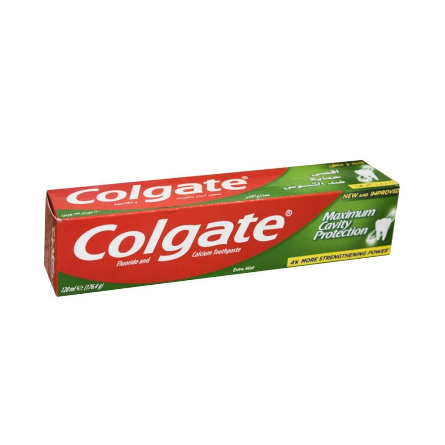 معجون أسنان كولجيت Maximum Cavity Protection بحجم 120 مل (يفترض من السياق أن T/B تعني Toothpaste). يوفر حماية قصوى ضد التسوس بفضل تركيبته التي تساعد على تقوية مينا الأسنان. مثالي للاستخدام اليومي للحفاظ على أسنان قوية وصحية.