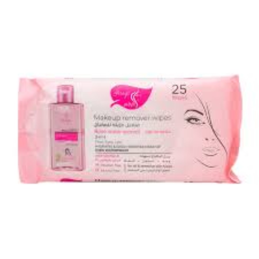 منديل مزيل مكياج 25 ح خلاصةالورد من العرايس يزيل المكياج بسهولة (الوجه-العيون-الشفاه) مناديل ناعمة بخلاصة الصبار ومدعم بالفيتامين. مناسب للبشرة المختلطة والجافة. خالي من الكحول والبارابين. تنظف وتزيل المكياج وذلك حتى الماسكارا المقاومة للم