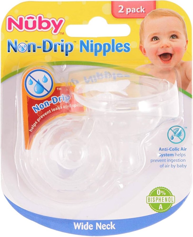 الوصف: حلمات سيليكون واسعة الرقبة لمنع الانسكاب. المزايا: مصنوعة من السيليكون الآمن. تصميم مضاد للانسكاب. طريقة الاستخدام: ضع الحلمة على زجاجة الرضاعة. التخزين: اغسل الحلمة جيدًا بعد كل استخدام.