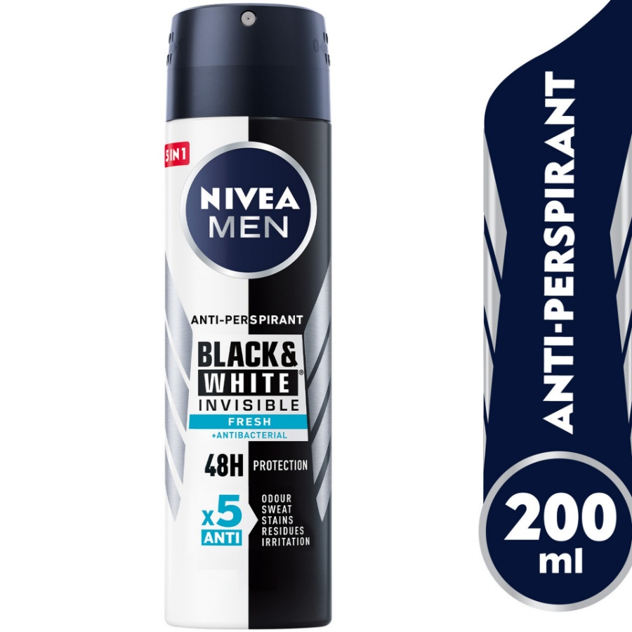 مزيل عرق نيفيا بخاخ للرجال Invisible Black & White Fresh، يأتي بحجم 200 مل.