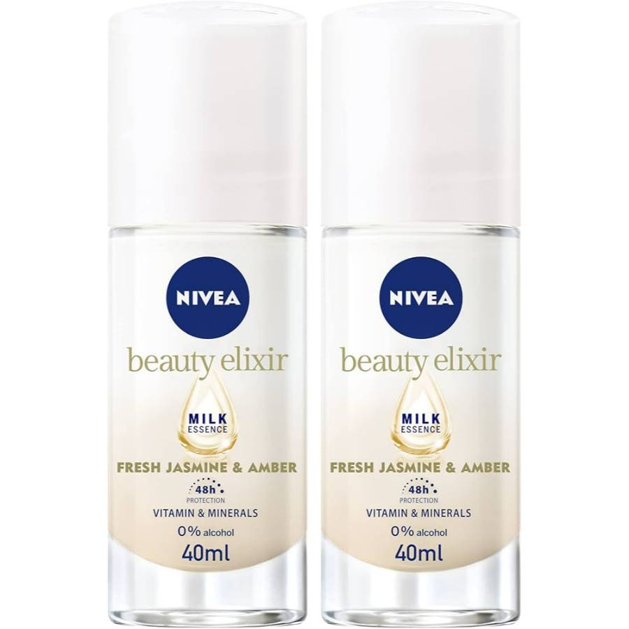 مزيل عرق نيفيا رول أون Beauty Elixir برائحة الياسمين والعنبر، يأتي بحجم 40 مل.
