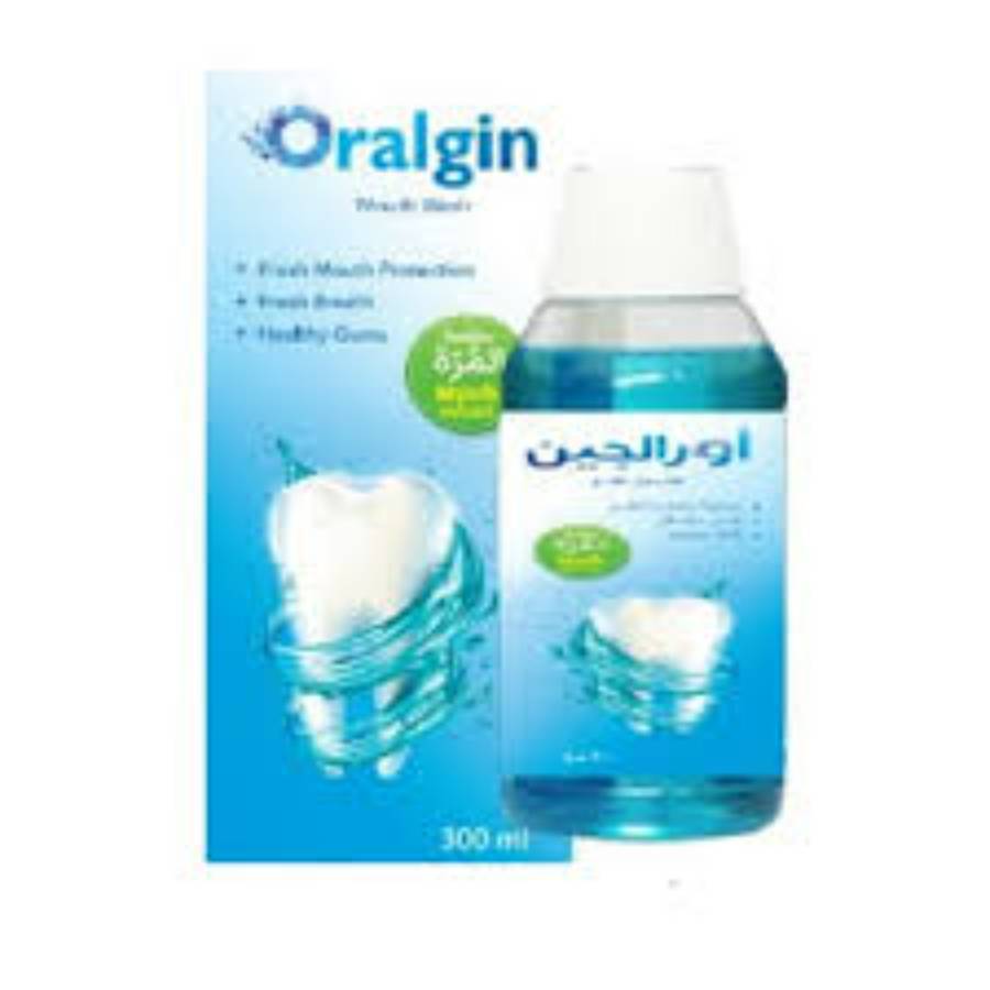 غسول فم Oralgin بحجم 300 مل للعناية الفموية.