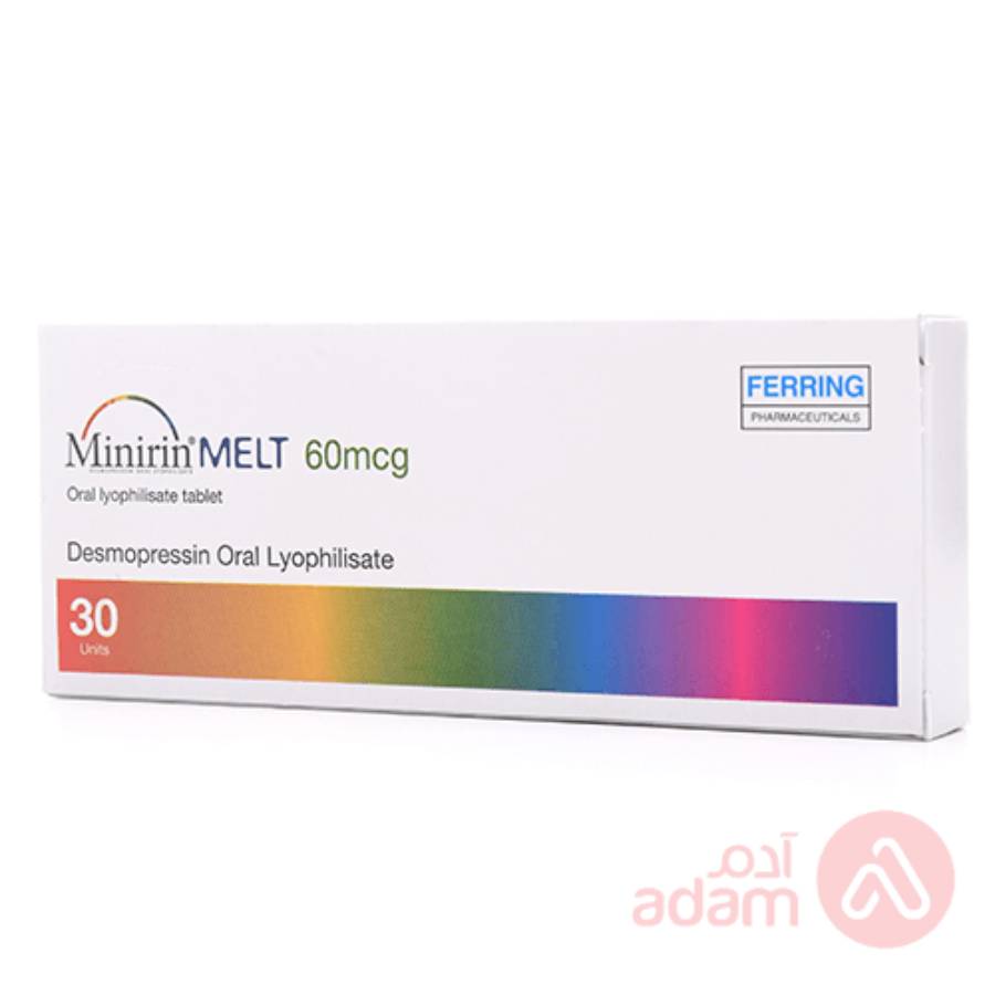 أقراص مينيرين ملت بتركيز 60 ميكروجرام، 30 قرصًا. جرعة أقل من مينيرين ملت تستخدم لعلاج حالات مشابهة بجرعة مخفضة. الأقراص قابلة للذوبان تحت اللسان وتوفر طريقة مريحة لإدارة الدواء.