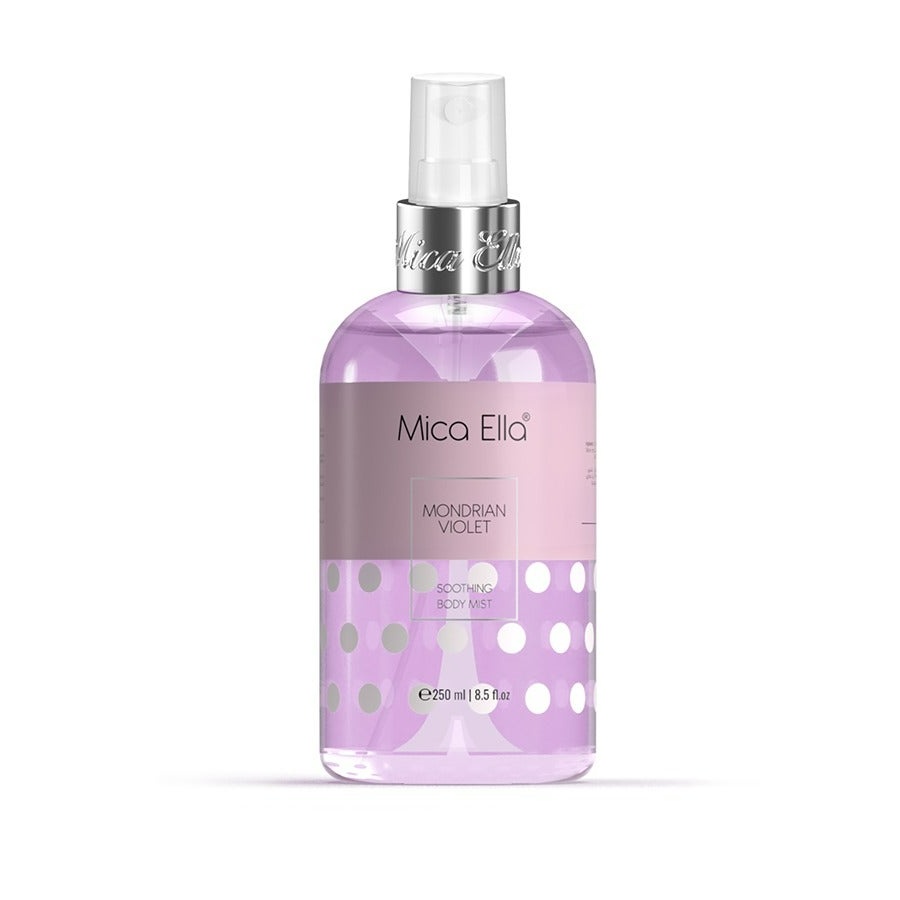 معطر جسم ميكا إيلا الملطف بنكهة مونديان بنفسجي والسيليكون، حجم 250 مل. يجمع بين رائحة زهور بنفسجية فريدة وخصائص السيليكون المرطبة والملطفة. يترك البشرة ناعمة ومعطرة برائحة زهرية مميزة.