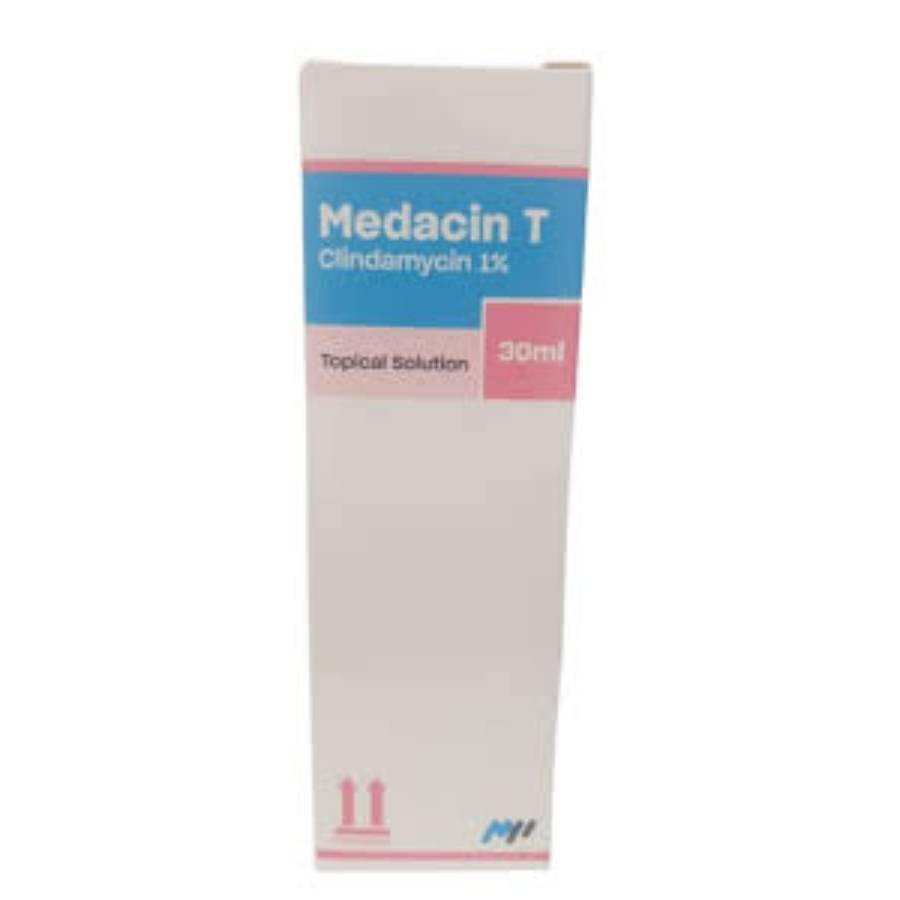 محلول موضعي ميداكين T بحجم 30 مل. يستخدم لعلاج حب الشباب والتهابات الجلد البكتيرية. يتم تطبيقه مباشرة على المنطقة المصابة للمساعدة في القضاء على البكتيريا وتقليل الاحمرار.