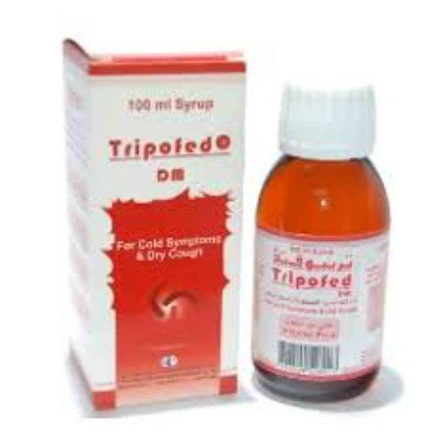 شراب تريبوفيدو دي إم للسعال الجاف، العبوة بحجم 100 مل.\nيحتوي على مكونات تساعد على تهدئة السعال الجاف وتخفيف الاحتقان.\nمناسب لتخفيف أعراض السعال والبرد التي لا يصاحبها بلغم.
