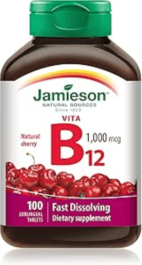 الوصف: أقراص تحتوي على فيتامين B12 لدعم صحة الدم والجهاز العصبي. المزايا: يعالج نقص فيتامين B12، يعزز الطاقة، ويدعم صحة الأعصاب. طريقة الاستخدام: قرص واحد يومياً تحت اللسان. المحتوى الغذائي: فيتامين B12 (1000 ميكروجرام).