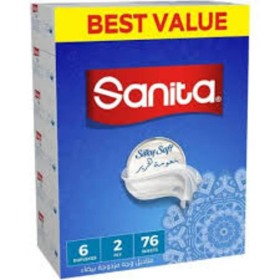 مناديل "سانيتا كلوب" غير معطرة، تأتي في عبوة تحتوي على 6 مجموعات، كل مجموعة بها 6 عبوات صغيرة، وكل عبوة تحتوي على 76 منديلًا (إجمالي 36 عبوة صغيرة). هذه المناديل مصممة للاستخدام اليومي، وهي غير معطرة لتناسب جميع الأفراد، بما في ذلك ذوي البشرة الحساسة. توفر نعومة وقوة امتصاص مناسبة.