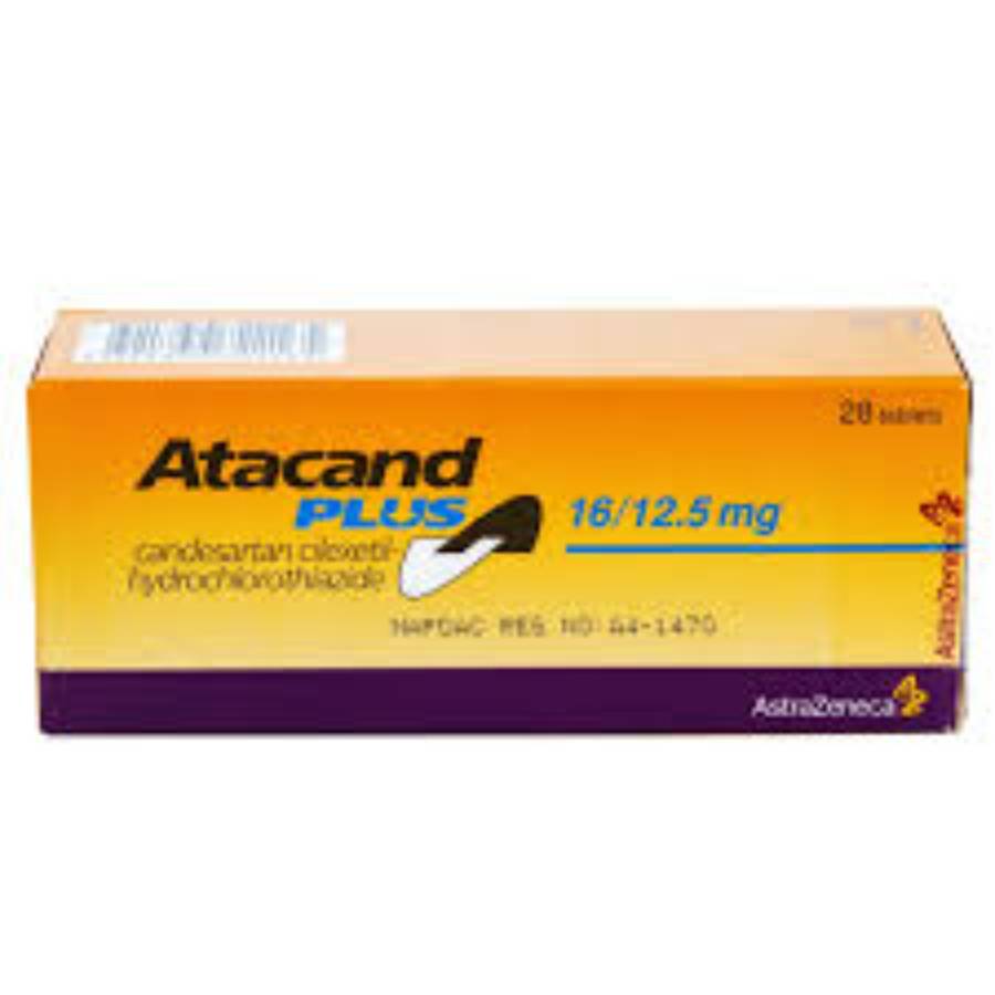 Atacand Plus 16/12.5 tablets are a combination oral medication for high blood pressure. Each tablet contains 16 milligrams of Candesartan Cilexetil and 12.5 milligrams of Hydrochlorothiazide. The package contains 28 tablets. This combination is used when an ARB alone is not sufficient to control blood pressure combining the effects of Candesartan with a diuretic to enhance efficacy.
