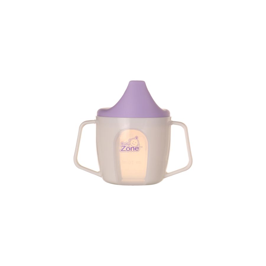BABY ZONE Training Cup 240 ML capacity model BLF 8283. Features two handles for easy grip and a lid/spout for spill prevention. Ideal for transitioning toddlers to independent drinking.