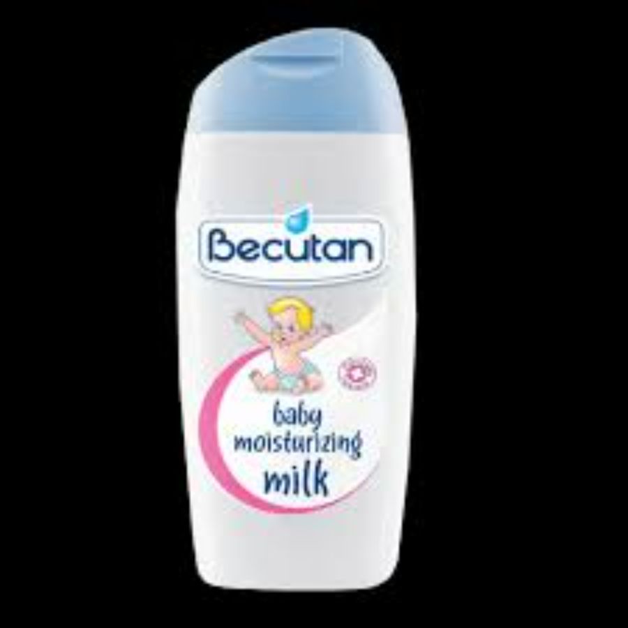 Becutan Baby Moisturizing Milk 200ml bottle.A light easily absorbed body lotion (milk) for daily hydration of baby's skin.Helps maintain the skin's natural moisture balance leaving it feeling soft smooth and non-greasy.