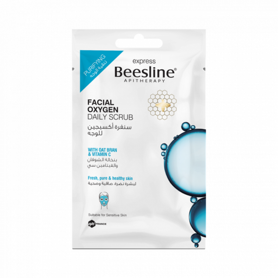 Beesline Oxygen Facial Scrub 25g A scrub that removes daily impurities and dead skin cells allowing the skin to breathe again. It gives the face a clean appearance and a healthy glow. Follow these steps to get the best results: Use daily. Use on clean dry skin for deep exfoliation or on damp skin for light exfoliation. Rub gently in a circular motion. Wash with cold water and dry the skin.