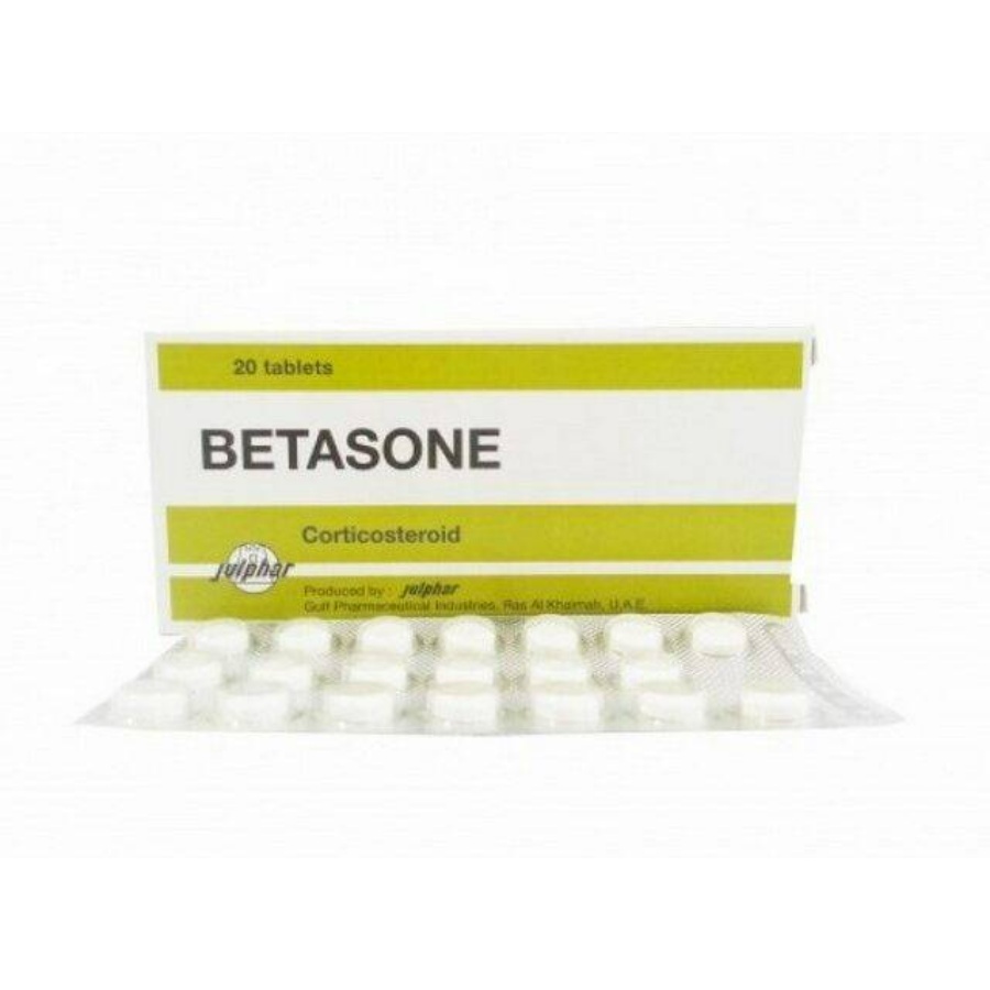 Betasone 1mg is a medication available in tablet form with each tablet containing 1 milligram of the active ingredient. This package provides 20 tablets typically prescribed for conditions requiring corticosteroid treatment. Always follow your healthcare professional's instructions regarding dosage and duration of use.