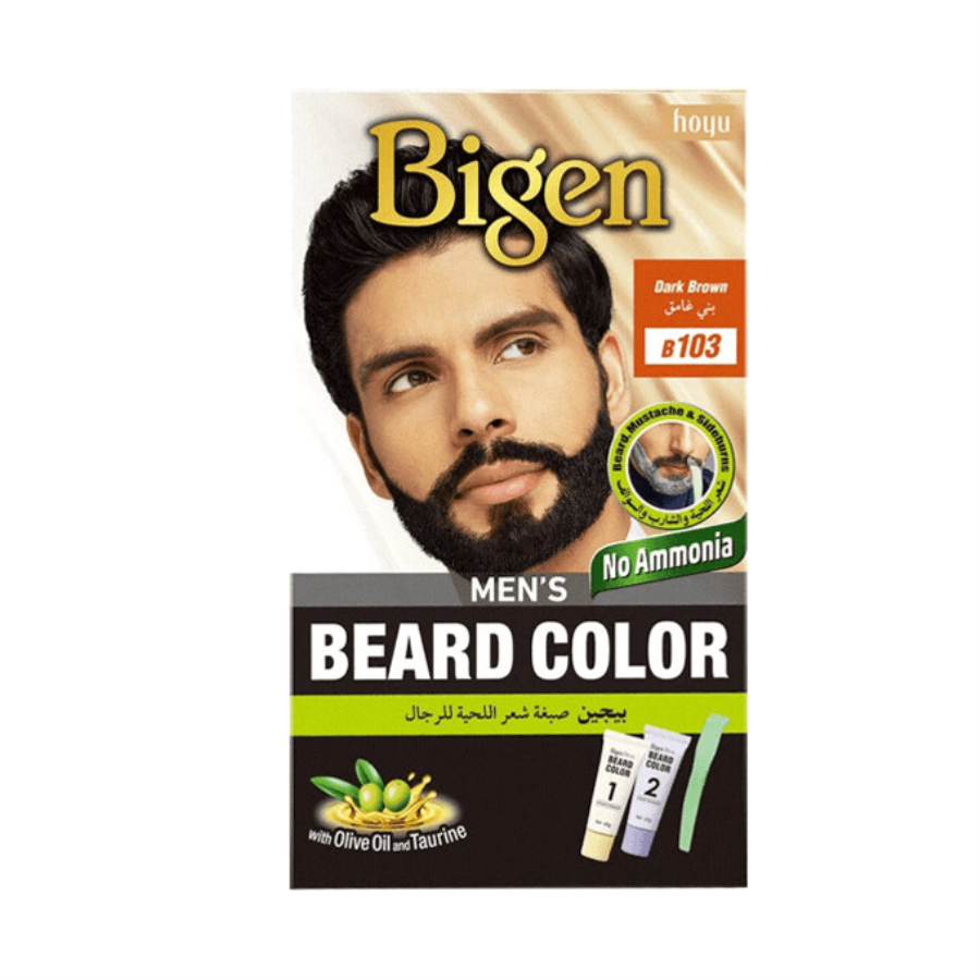 Perfect beard dye Bigen Men's Beard Dye is enriched with Aloe Vera Extract and Olive Oil. Gives the beard a rich natural color and helps hide gray hair from roots to ends. It has a wonderful formula that gives you long-lasting results and completely covers white hair without staining the skin. It is ammonia free making it safe for all skin types. It comes with a special beard comb for easy use on beard and mustache. Contains taurine and olive oil. Rich long-lasting color. Perfect gray coverage. Does not leave stains on the skin. Information: Ammonia free.