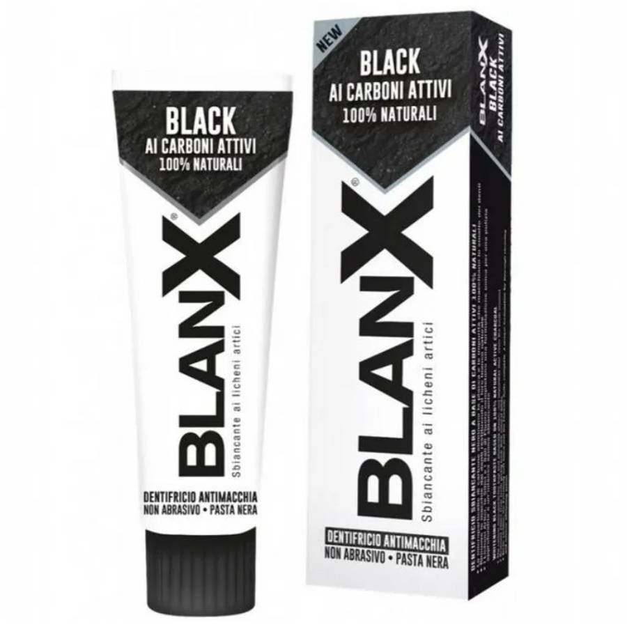 BLANX BLACK ANTI-STAIN toothpaste is formulated to help remove surface stains and whiten teeth thanks to natural activated charcoal. It provides deep cleaning and helps restore natural tooth whiteness.