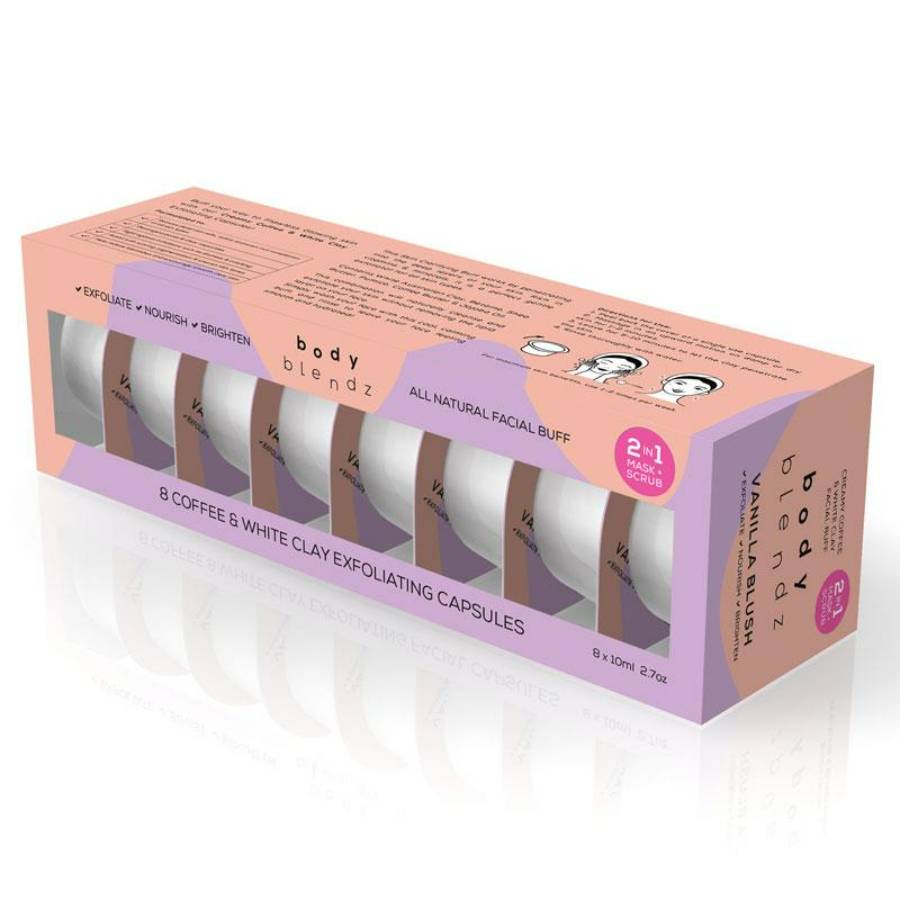 BODY BLENDZ COFFEE & WHITE CLAY CAPSULES are a body treatment designed to exfoliate and purify the skin. Each capsule contains a rich blend for a unique care experience. Perfect for use as part of a home spa routine.