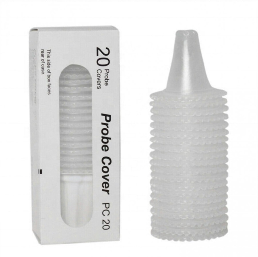 Description: Replacement ear thermometer covers. Ingredients: Medical-grade plastic. Usage: New cover before each use. Benefits: Prevents contamination single-use.
