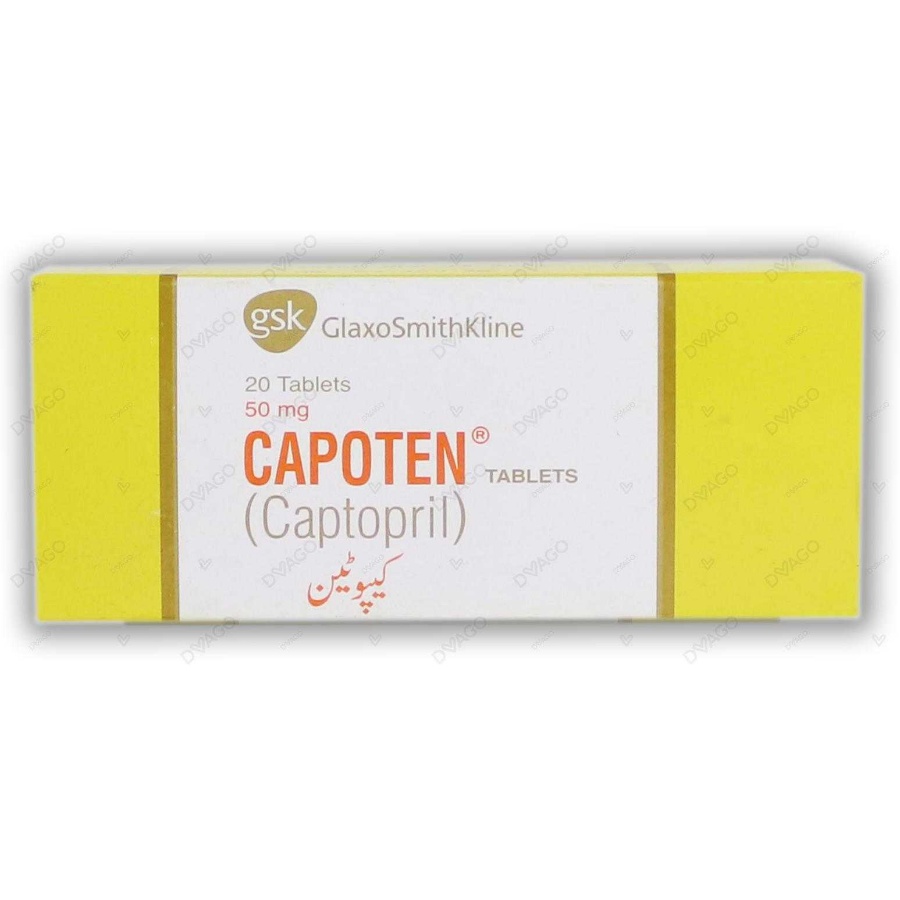 CAPOTEN 50MG 20TAB is a medication containing Captopril used for cardiovascular conditions. It is in tablet form with a strength of 50 milligrams per tablet. The package contains 20 tablets providing a supply for oral administration as prescribed.