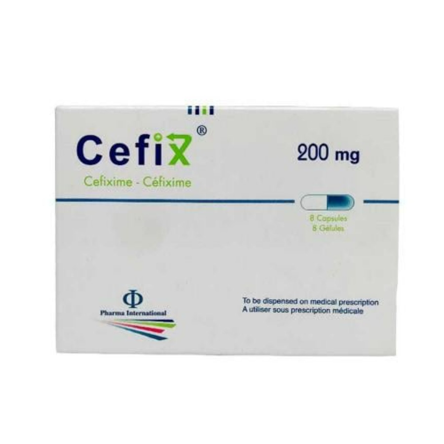 CEFIX 200 MG 8 CAP# is a pharmaceutical medication in capsule form. The name "Cefix" suggests it contains Cefixime an antibiotic. Each capsule contains 200 milligrams. The package contains 8 capsules providing a specific quantity for a treatment course.