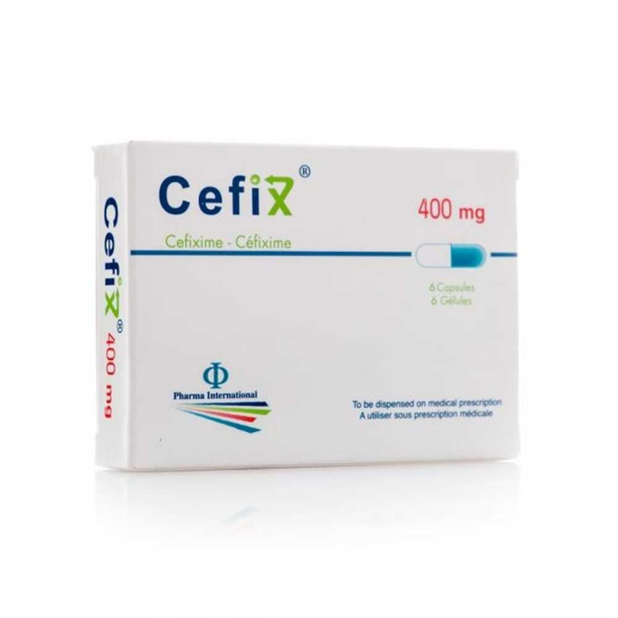 CEFIX 400 MG 6 CAP is a pharmaceutical antibiotic medication likely containing Cefixime. It is in capsule form with a strength of 400 milligrams per capsule. The package contains 6 capsules providing a standard course of treatment for certain infections.
