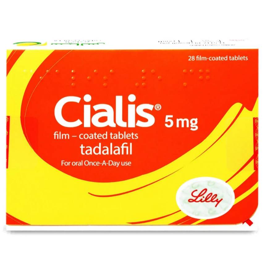 CIALIS 5 MG 28 TAB is a pharmaceutical medication containing Tadalafil. It is in tablet form with a strength of 5 milligrams per tablet. The package contains 28 tablets commonly used for treating erectile dysfunction or benign prostatic hyperplasia on a daily basis.