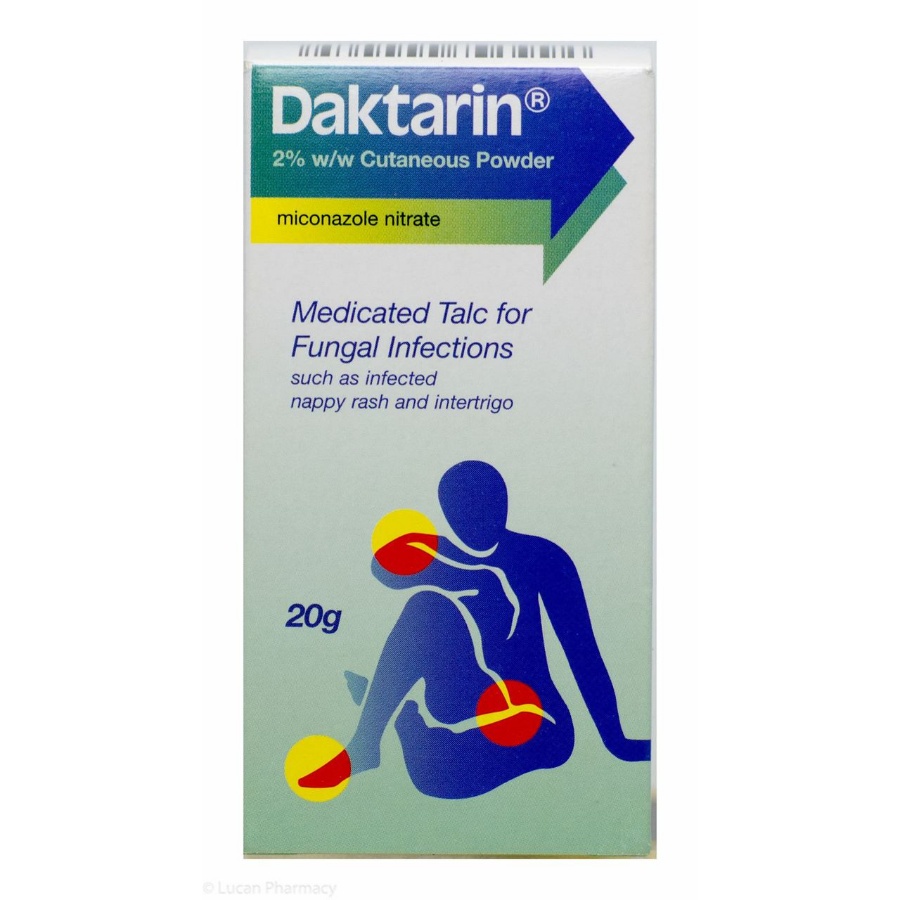 DAKTARIN 2% POWDER 20 G is a topical antifungal powder. It contains Miconazole Nitrate 2% used to treat fungal skin infections particularly in areas prone to moisture like feet and groin. This 20 gram powder helps to keep the area dry and prevent recurrence of infections.