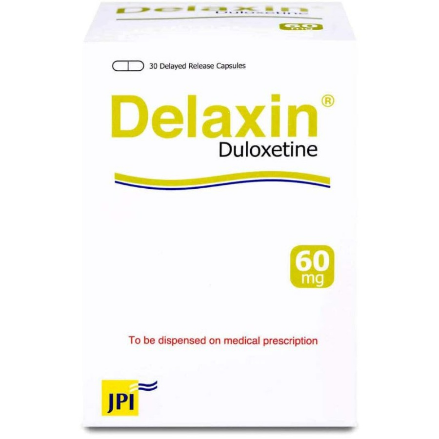 DELAXIN 60 MG 30 CAP is a higher strength capsule formulation likely containing Duloxetine 60mg. This dosage is commonly used for treating depression generalized anxiety disorder or managing chronic pain conditions. This package contains 30 capsules providing a month's supply for daily oral dosing.