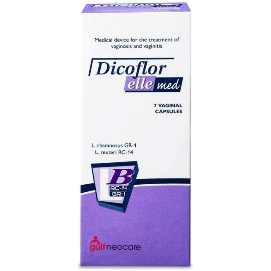 DICOFLOR ELLE VAGINAL CAPSULES are probiotic capsules specifically formulated for restoring and maintaining the balance of vaginal flora. They contain beneficial bacteria strains to help prevent and treat vaginal infections and discomfort. This package contains 7 vaginal capsules.